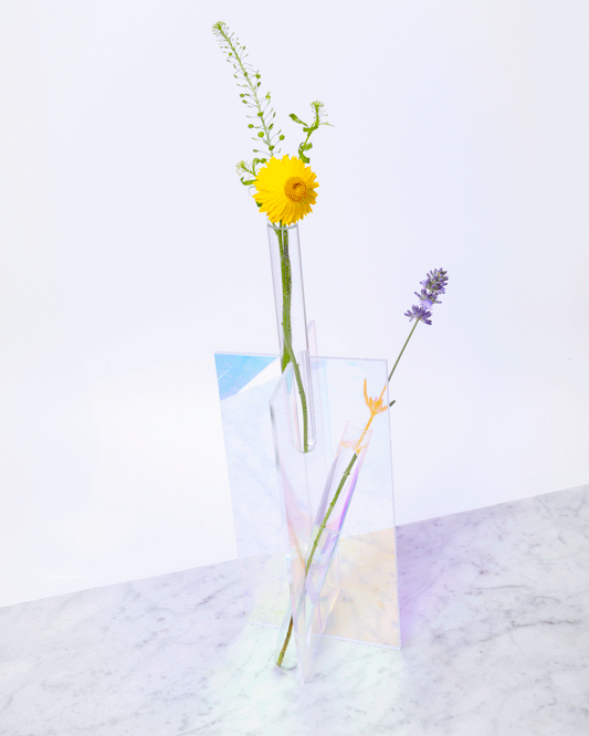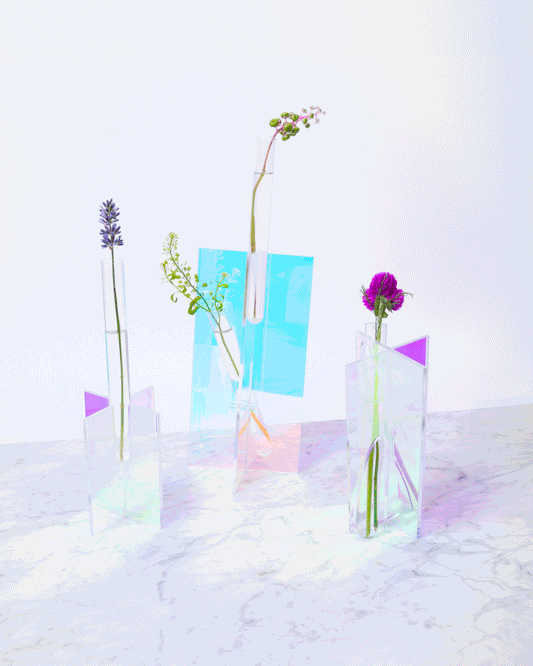 Made with stunning, rainbow-hued acrylic and glass, our vases let you see your buds in a new light everytime!